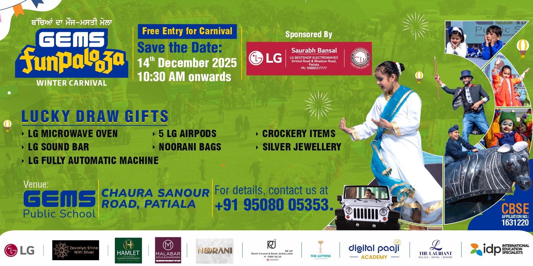 GEMS Public School is conveniently located in Chaura Sanour Road, Patiala – 147002, Punjab, India